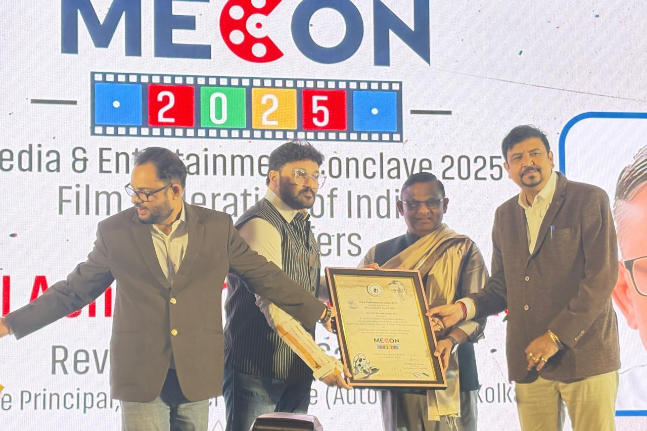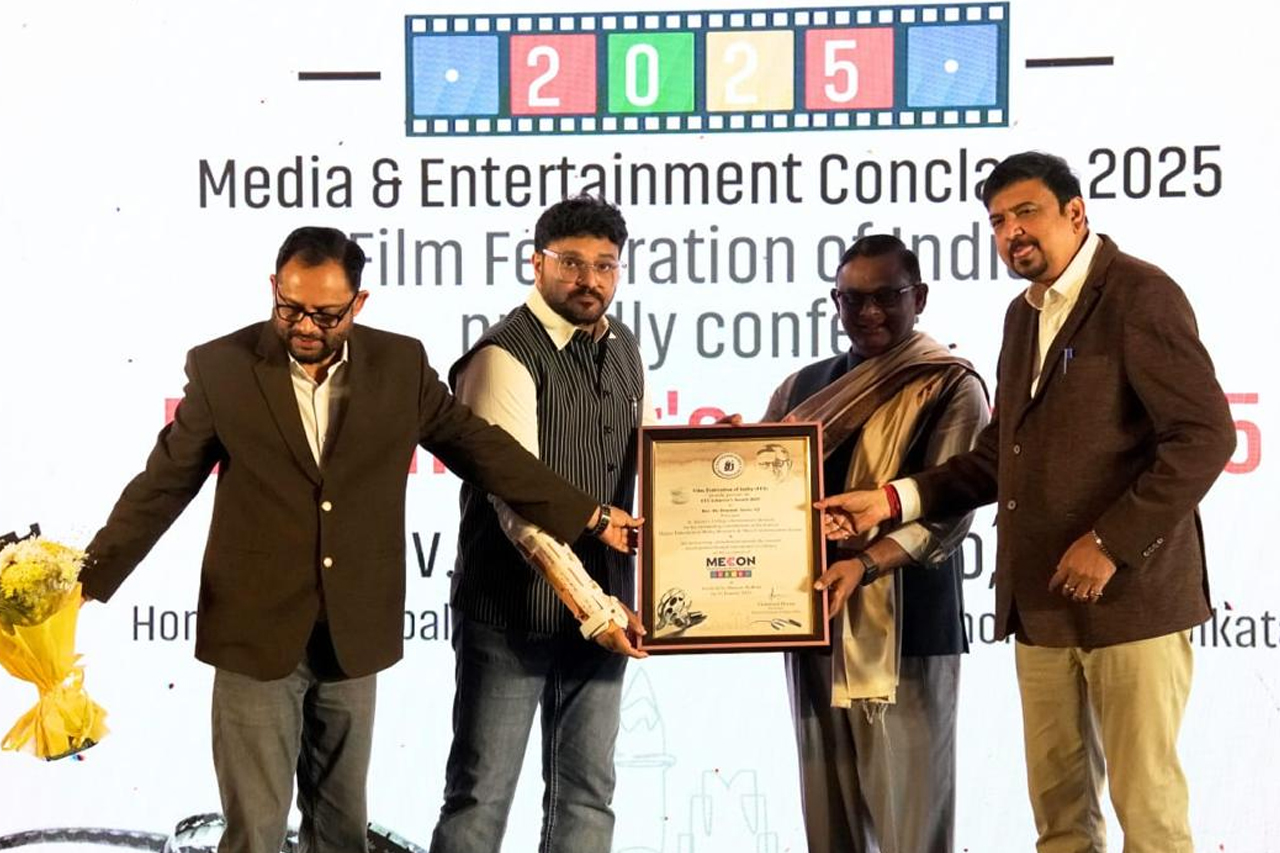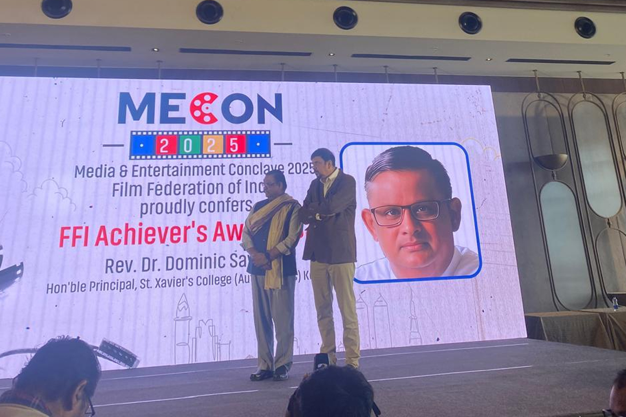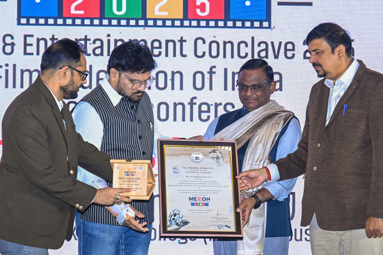 Kolkata, 31st January 2025 – Today marks a momentous occasion for all Xaverians as Rev. Dr. Dominic Savio, SJ, Principal of St. Xavier’s College (Autonomous), Kolkata, was honoured with the Film Federation of India Achiever’s Award at MECON 2025: Media and Entertainment Convention. The prestigious event was hosted by the Film Federation of India in collaboration with the Techno India Group at Fairfield by Marriott, Kolkata.