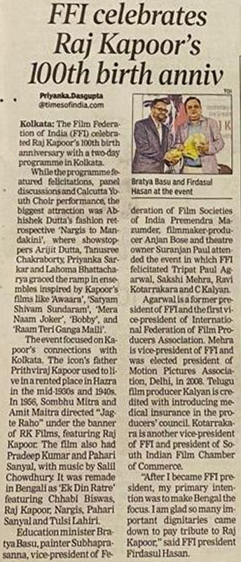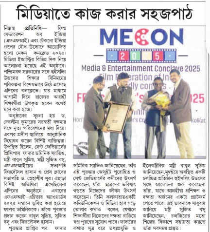 The award was presented to him by Mr. Babul Supriyo and Mr. Sujit Bose, Ministers of State, Government of West Bengal, in the presence of Mr. Firdausul Hasan, President of the Film Federation of India. The convention was graced by eminent personalities from the Film, Media, and Communication industries, along with 300 students from across Kolkata, making it a truly inspiring event.
