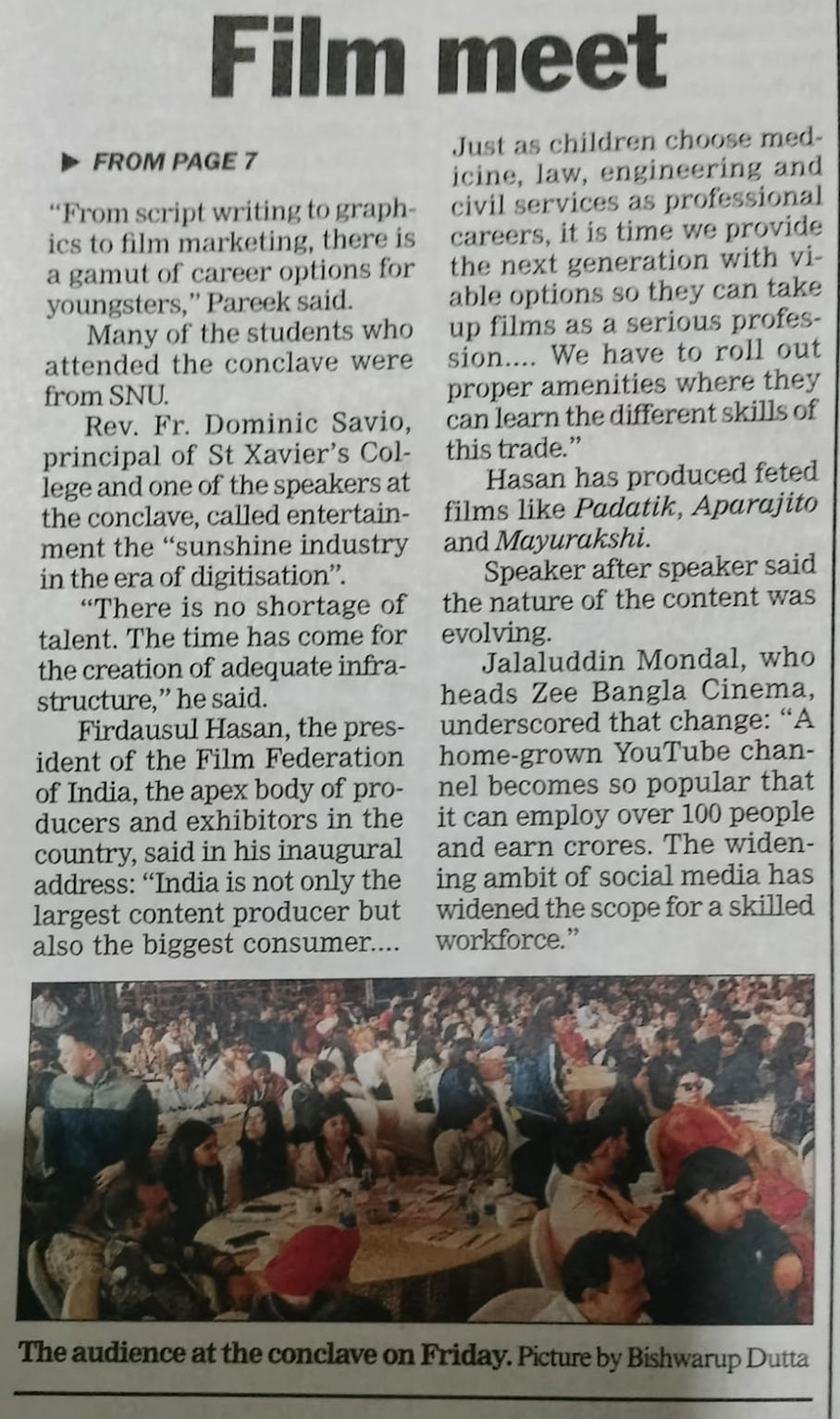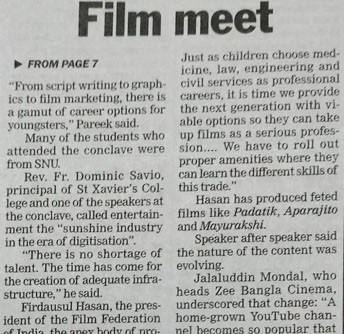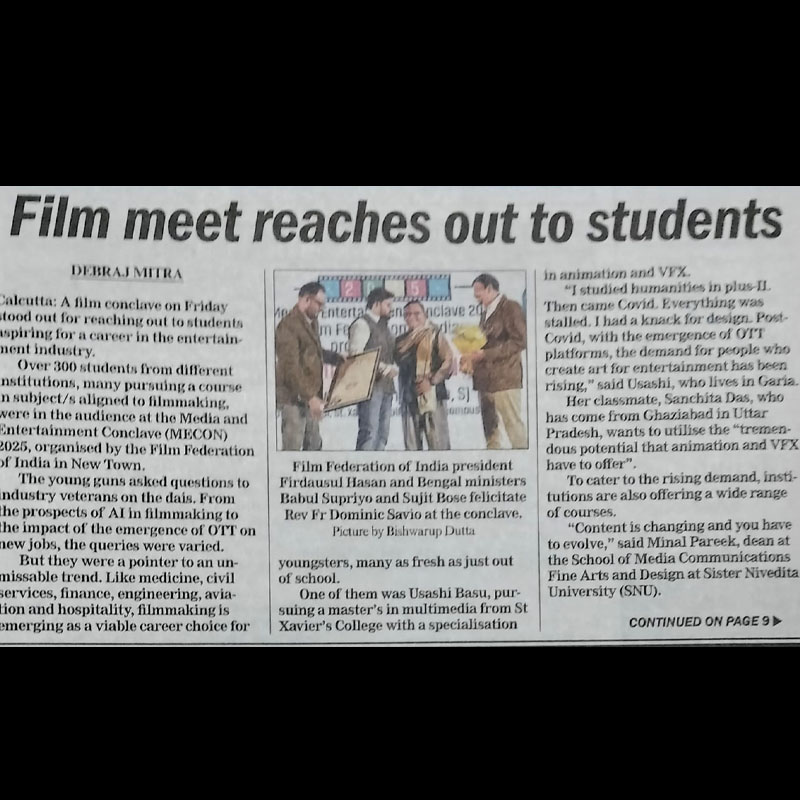 In his acceptance speech, Rev. Dr. Dominic Savio, SJ, dedicated this award to the students, staff, alumni and all stakeholders of the college. He highlighted the legacy of Jesuit priests and their significant contributions to the media and entertainment sector over the decades. Additionally, he shared his vision for the upcoming Media Hub and Research Facility of St. Xavier’s College at E.M. Bypass, Anandapur.